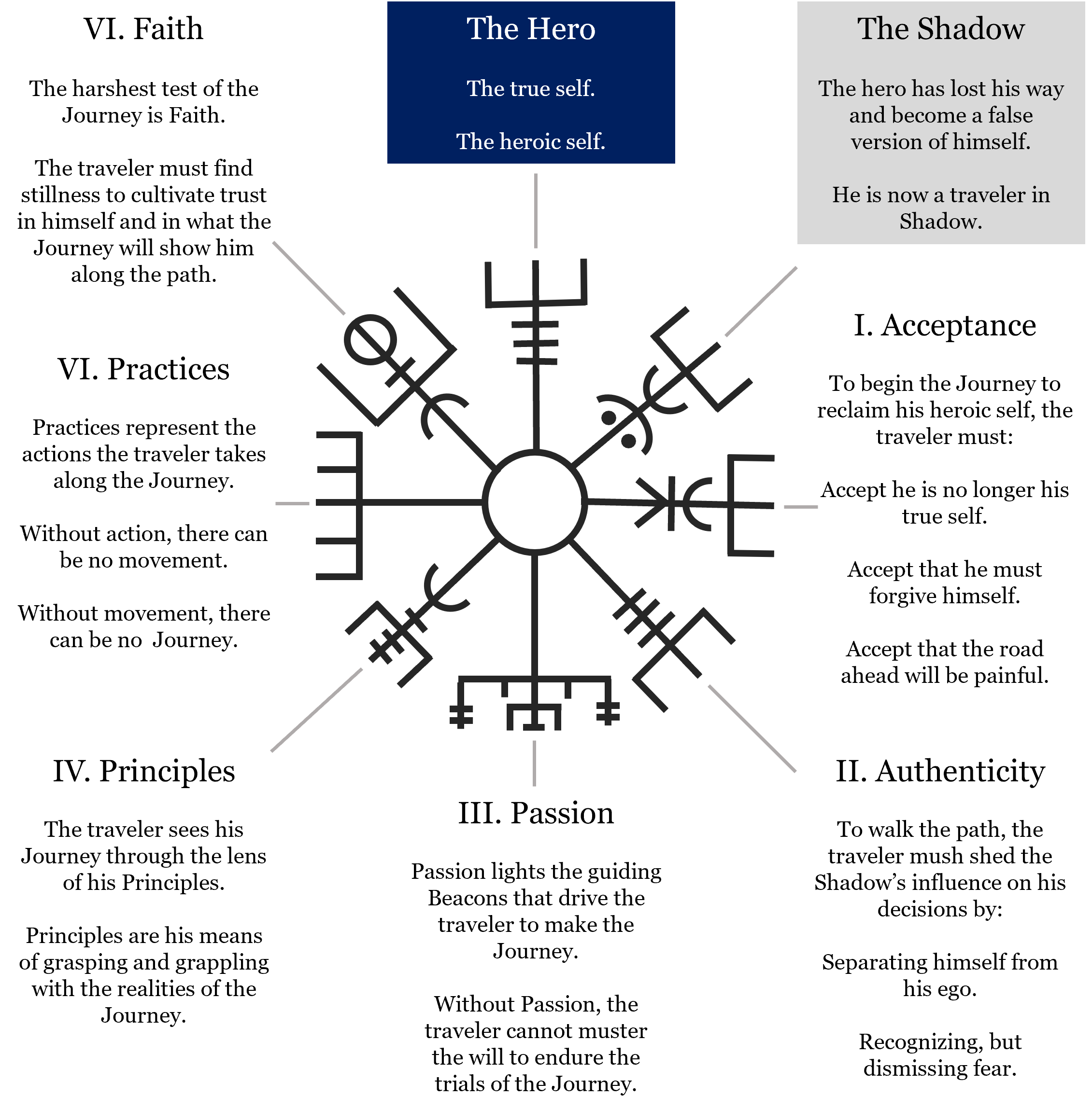 And experienced sailors uniquely understand the many parallels of a voyage under sail and life’s journey, including personal growth and discovery. In that regard, below is an interpretation of the Vegvísir’s many symbols.